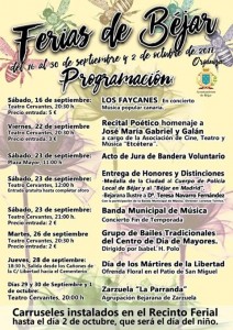 Béjar- Ferias 2017 Béjar- Ferias 2017 desde el sábado 16 de septiembre hasta el lunes 2 de octubre. PROGRAMACIÓN: Sábado, 16 de septiembre: LOS…