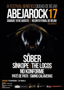 Béjar- Festival benéfico AbejaRock 2017 Béjar- Festival benéfico AbejaRock 2017 el sábado 19 de agosto. IX ecición del Festival Benéfico Abejarock. Sôber + Sinkope ( Grupo…