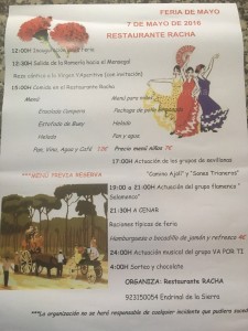 Feria de Mayo- Restaurante Racha La Feria de Mayo- Restaurante Racha se celebra el sábado 7 de mayo de 2016 https://www.facebook.com/Restaurante-Racha-118562534837502/?ref=hl