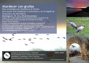 Ruta ornitológica por Salvatierra de Tormes "Atardecer con grullas" Domingo 22 de noviembre de 2015 Domingo 29 de noviembre de 2015 Salida a las 15.30…