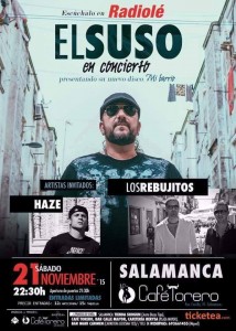 21 noviembre de 2015 SALA TORERO Concierto presentación del nuevo disco de EL SUSO "MI BARRIO". Artistas invitados: LOS REBUJITOS y HAZE. Comprar entradas --> https://www.ticketea.com/entradas-concierto-entradas-concierto-el-suso-en-concierto-salamanca