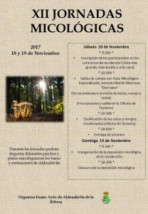 Aldeadávila de la Ribera- Jornadas micológicas 2017 Aldeadávila de la Ribera- Jornadas micológicas 2017 el sábado 18 y domingo 19 de noviembre.